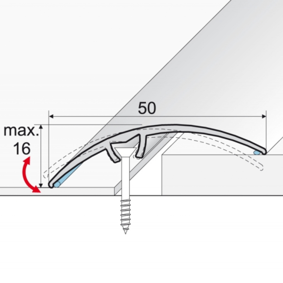 A 65 típusú szintkülönbség váltó profil, ami max. 16mm szintkülönbséget tud áthidalni.
