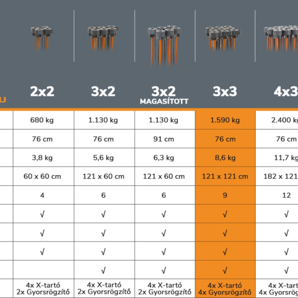 A BORA Centipede mobil munkaasztal helyettesíti a szétszedhető munkaasztalt vagy a munka-, illetve építészbakot. Acélkonstrukcióval rendelkezik, ami kellően flexibilis, hogy felfogja a nehezebb tárgyaktól származó ütéseket és ezzel egyidejűleg biztosítsa a hosszú távú problémamentes használatot. Válasszon a különböző méretű százlábú munkaasztalok közül igényeinek megfelelően. Válassza a hobbibarkácsoláshoz ideális 2x2-es vagy a professzionális 5x3-as kivitelt, melynek maximális teherbírása 2725 kg. Minél nagyobb méretű a munkaállomás, annál nagyobb a teherbírása.