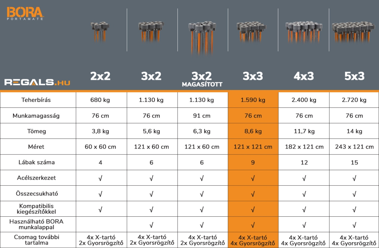 A BORA Centipede 3x3 (más néven százlábú) mobil munkaasztal egy hordozható munkaasztal akár 1590 kg-os teherbírással. Kompakt méretekkel, illetve könnyű, rugalmas és ellenálló acélvázzal rendelkezik, ami a munka során a durvább használatot is jól viseli. A különböző kiegészítőknek köszönhetően kellően univerzális, kültéren és beltéren egyaránt használható.