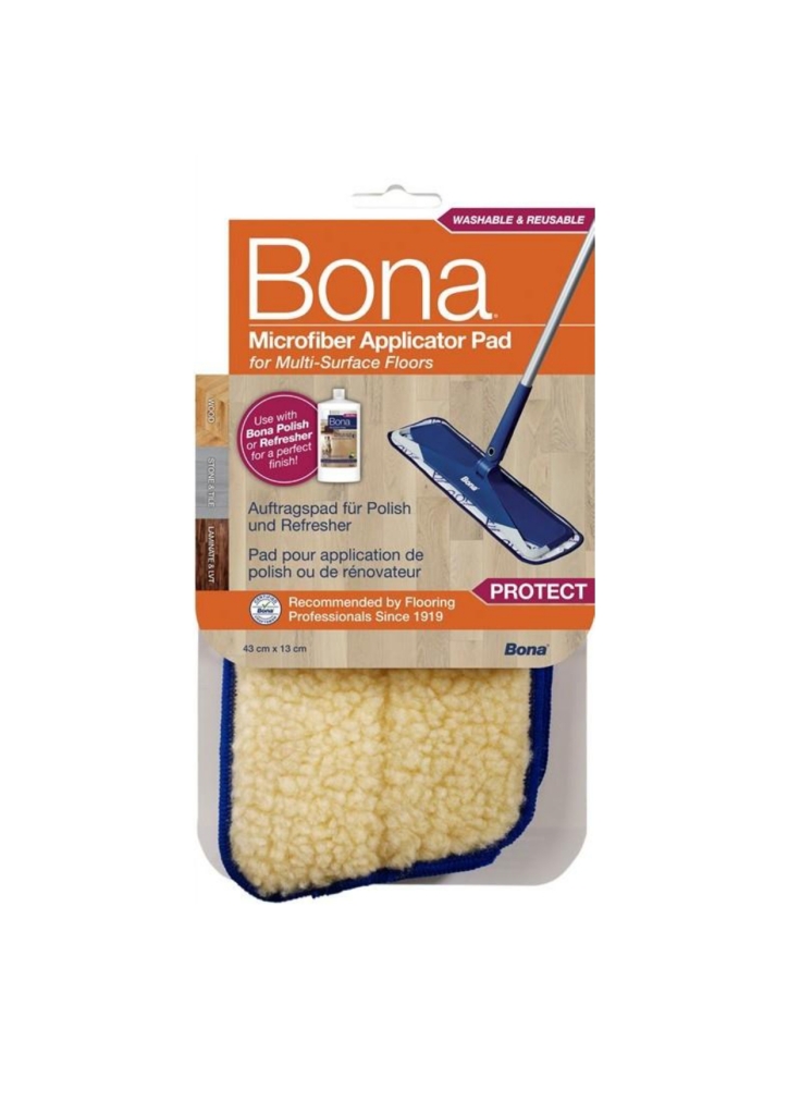 A Bona Microfiber Applikator Pad egyedi kialakítású a Bona Wood Floor Polish, Bona Wood Floor Refresher és Bona Hard-Surface Floor Polish egyenletes felvitelére. Az egyedülálló puha és nem koptató mikroszálas kialakítás hibátlan felületet hoz létre a padlón, így biztonságosan használható minden kemény felületű és fapadlón. Mosható és újrafelhasználható. A Bonánál elkötelezettek vagyunk a fenntartható megoldások előmozdítása mellett a tisztább és egészségesebb otthon érdekében.