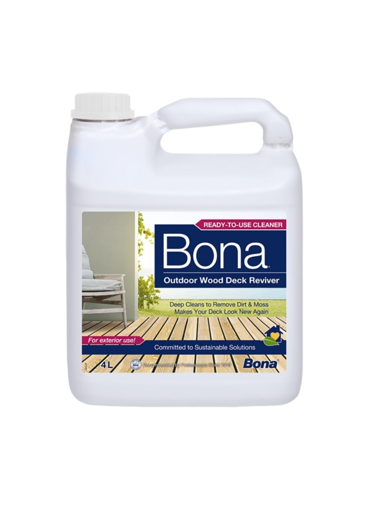 A Bona Decking Reviver egy gyors és hatékony módszer az elhasználódott és elhasználódott fa fedélzetek mélytisztítására. Eltávolítja a szennyeződéseket, törmeléket és lerakódott olajat a kültéri fa teraszokról és teraszokról. Háromféleképpen használható: bérelhet Bona Power Scrubber-t, hogy szupergyorsan elvégezze a munkát, használhat kültéri, merev sörtéjű kefét kis helyekre, vagy bérelhet egy Bona-tanúsítvánnyal rendelkező mesterembert, aki elvégzi helyette a munkát.