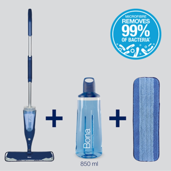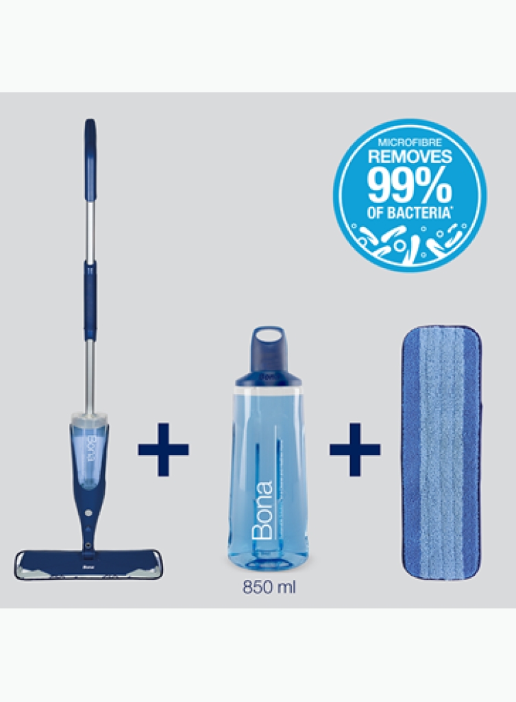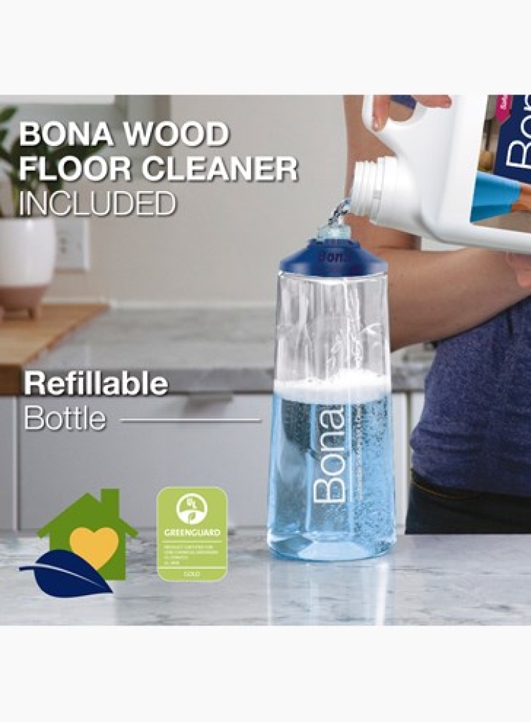 Amikor a fapadló ápolásának legjobb módját keresi, a padlóburkoló vállalkozók gyakran javasolják a Bona használatát. A Bona Premium Spray Mop fapadlókhoz egy minden-az-egyben megoldás a padlók tisztítására és természetes fényének felfedésére. Tartalmazza a Bona egyedi összetételű Wood Floor Cleaner tisztítószerét, amely ápolja és védi a padlót gyengéd, pH-semleges formulájával, amely gyorsan, maradék nélkül szárad. Ezenkívül tartalmaz egy Bona mikroszálas tisztítópárnát, szabadalmaztatott kétzónás kialakítással, amely felszívja és felfogja a szennyeződéseket és törmeléket a tökéletes tisztaság érdekében. Extra nagy felmosófejjel és masszív fogantyúval van felszerelve a gyors és egyszerű tisztítás érdekében, a rugalmas gumi sarkok pedig megvédik a szegélyléceket és a bútorokat a horzsolásoktól és karcolásoktól. A másodlagos markolat nagyobb tisztítóerőt tesz lehetővé, a visszahúzható kampó pedig megkönnyíti a tárolást. A vízbázisú megoldások és a GREENGUARD GOLD tanúsítvány biztonságosabb terméket biztosítanak családja, házi kedvencei és bolygónk számára. Elkötelezett a fenntartható megoldások előmozdítása a tisztább és egészségesebb otthon érdekében.