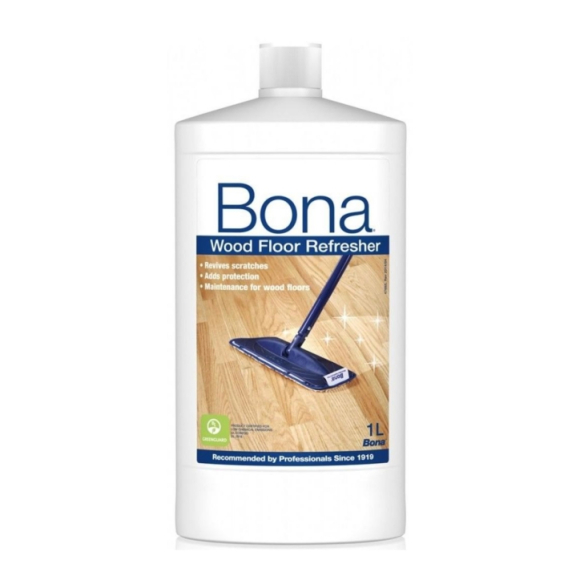 A Bona Wood Floor Refresher visszaadja a fapadló szépségét, növeli a fényét, és újszerűvé varázsolja a régi padlókat. A poliuretán alapú formula kiváló védelmet nyújt, és nem tartalmaz viaszt, ami azt jelenti, hogy lehetővé teszi a későbbi bevonatokat. Fontos! Használat előtt mindig ellenőrizze a padlót a tapadás és a kívánt eredmény szempontjából. Ne használja viaszos vagy olajozott padlón.