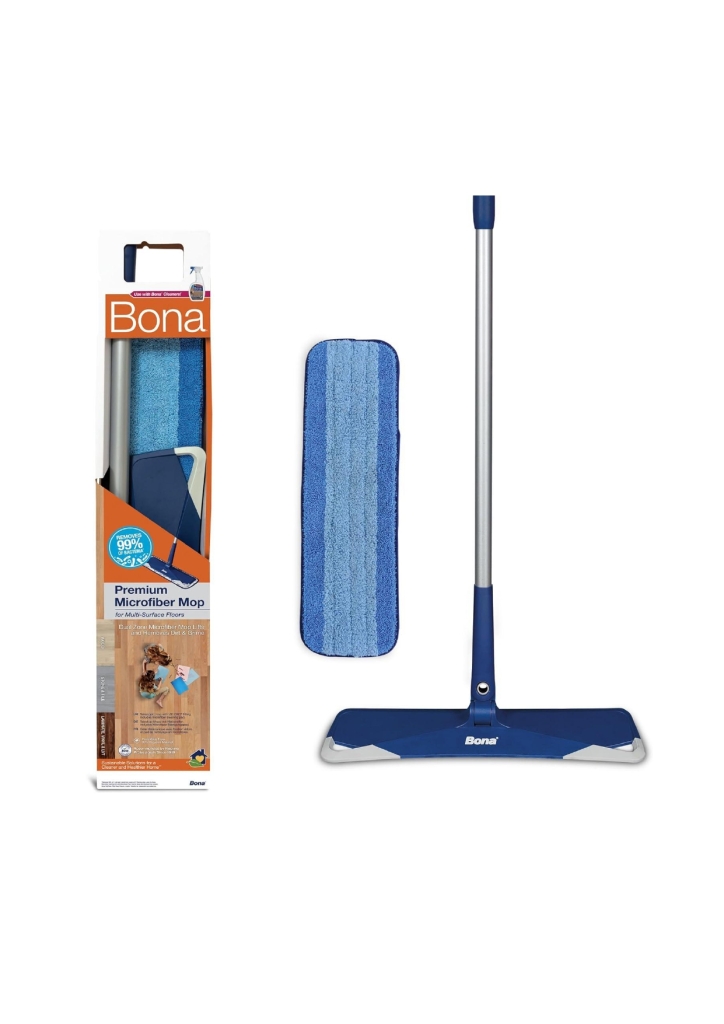 Amikor a fapadlók ápolásának legjobb módját keresi, sok padlóburkolat-vállalkozó javasolja a Bona padlóápoló termékek rendszerének használatát. A Bona Premium Microfiber Mop strapabíró teleszkópos fogantyújával és rendkívül nagy felmosófejével gyors és egyszerű módot kínál a padló tisztítására, akár 20%-kal gyorsabban, mint a vezető lapos felmosó. A puha, rugalmas sarkok védik a bútorokat és a szegélyléceket a sérülésektől. Tartalmaz egy Bona mikroszálas tisztítópárnát, amely szabadalmaztatott kialakítású, kétzónás tisztítóhatást biztosít a csíkmentes tisztítás érdekében, miközben eltávolítja a baktériumok 99%-át. Teljesen biztonságos minden fa és kemény felületű padlóhoz. A több mint 90%-ban újrahasznosított tartalommal készült mikroszálas tisztítópárna több mint 500-szor mosható és újrafelhasználható. A Bonánál elkötelezettek vagyunk a fenntartható megoldások előmozdítása mellett a tisztább és egészségesebb otthon érdekében.
