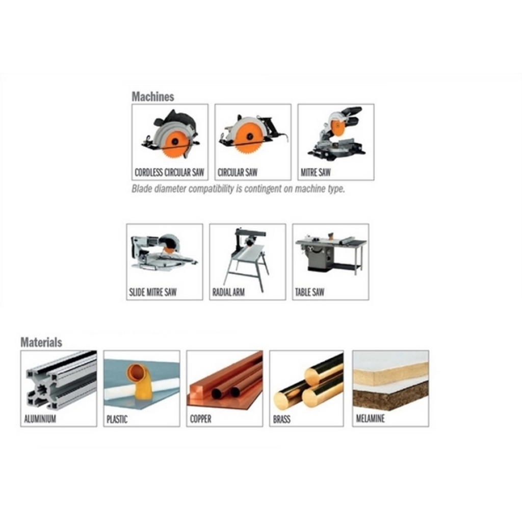 Alkalmazható gérvágó fűrészekhez, asztali fűrészekhez, radiális karos fűrészekhez, hordozható és akkus fűrészekhez egyaránt. A vékony fűrésztárcsa kevesebb energiát használ fel.