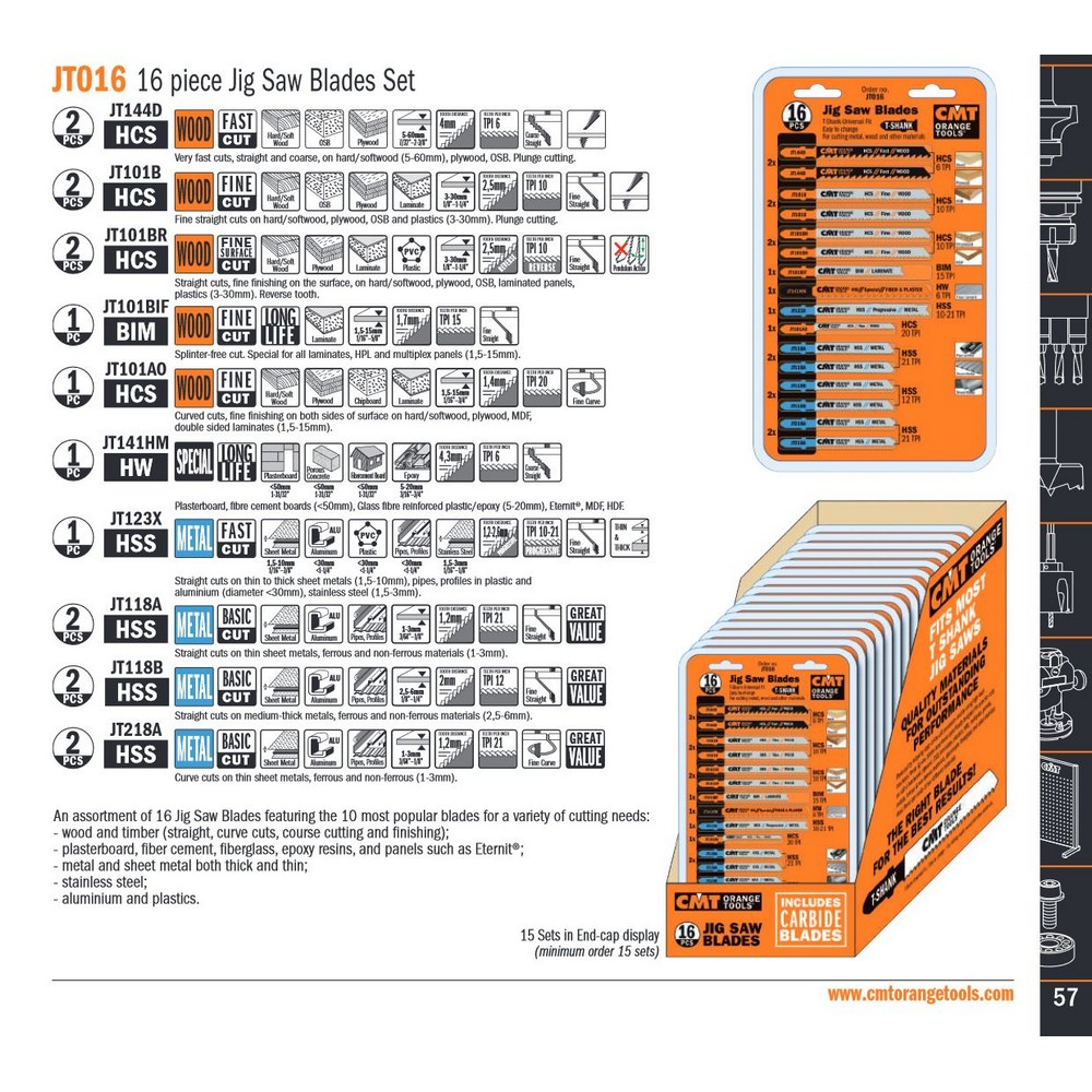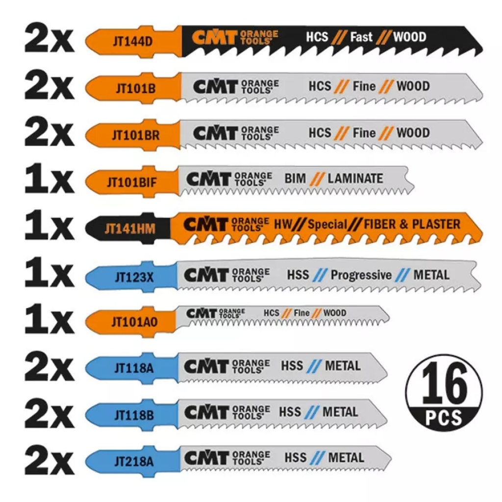 CMT 16 darabos ipari dekopír fűrészlap készlet minden anyaghoz