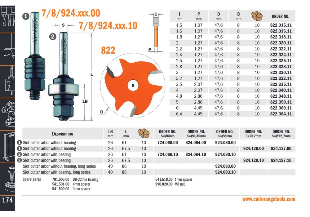 A CMT nútmarók sokféle választékban kaphatók, amelyek tartalmaznak 22 mm átmérőjű csapágyat 12,7 mm vágási mélységig.