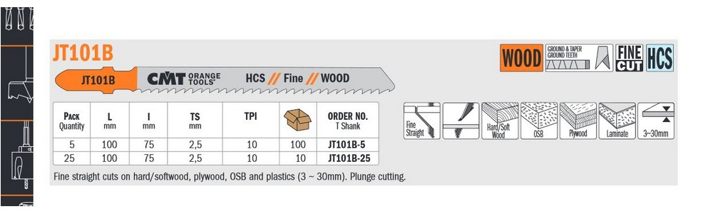 CMT ipari dekopír fűrészlap finom egyenes vágásokhoz, puha és keményfára, rétegelt lemezre, osb és műanyagok esetén. 3 mm-től 30 mm-ig. Merülő vágáshoz is ajáljuk.