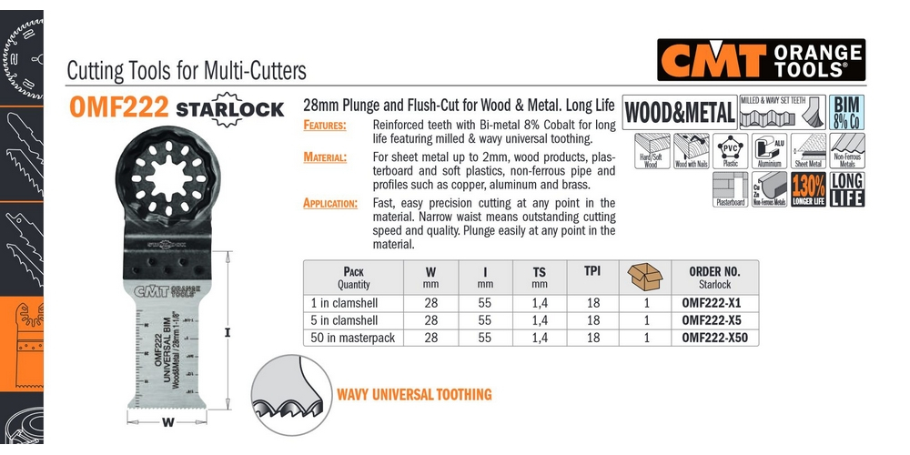 CMT 28 mm-es, 130%-os élettartamú fűrész fához és fémhez - 5 db-os