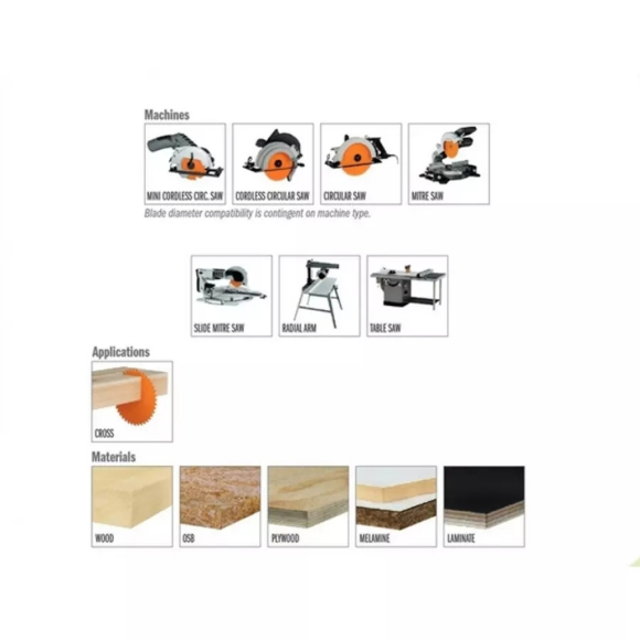 Az optimális minőség érdekében krómmal bevont körfűrészlapok asztali és speciális körfűrészekhez, hordozható gépekhez, rétegelt lemez és két oldalról bevont panelek vágásához