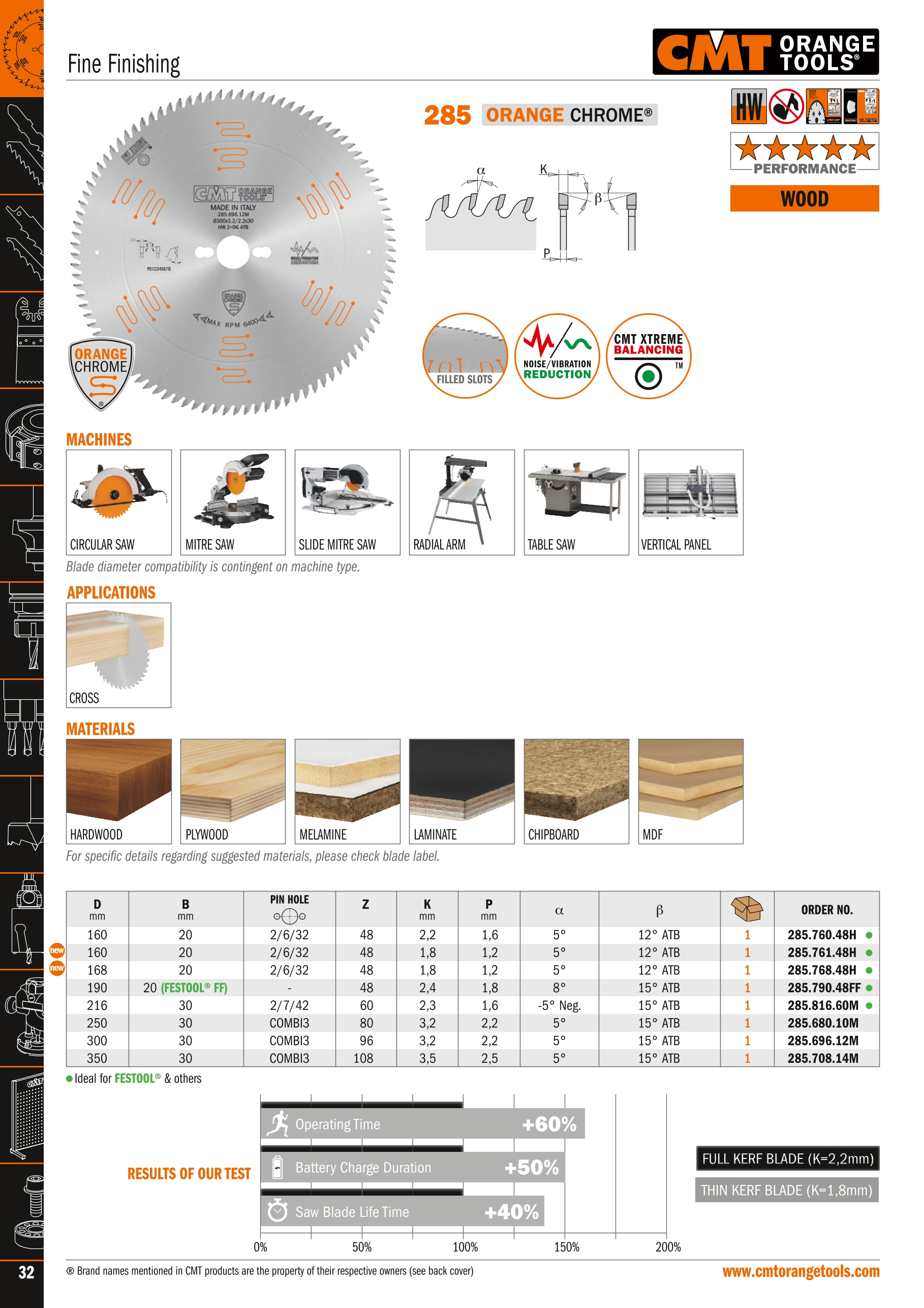 Az optimális minőség érdekében krómmal bevont körfűrészlapok asztali és speciális körfűrészekhez, hordozható gépekhez, rétegelt lemez és két oldalról bevont panelek vágásához