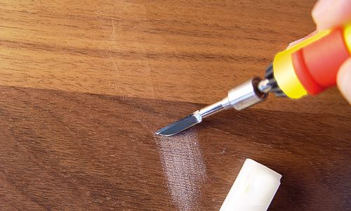 Dörzsölje a speciális töltőanyag-applikátort a fa erezete mentén a felületi szerkezet helyreállításához.