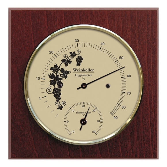 Valódi hajhigrométer bimetál hőmérővel kombinálva borospincében történő méréshez.