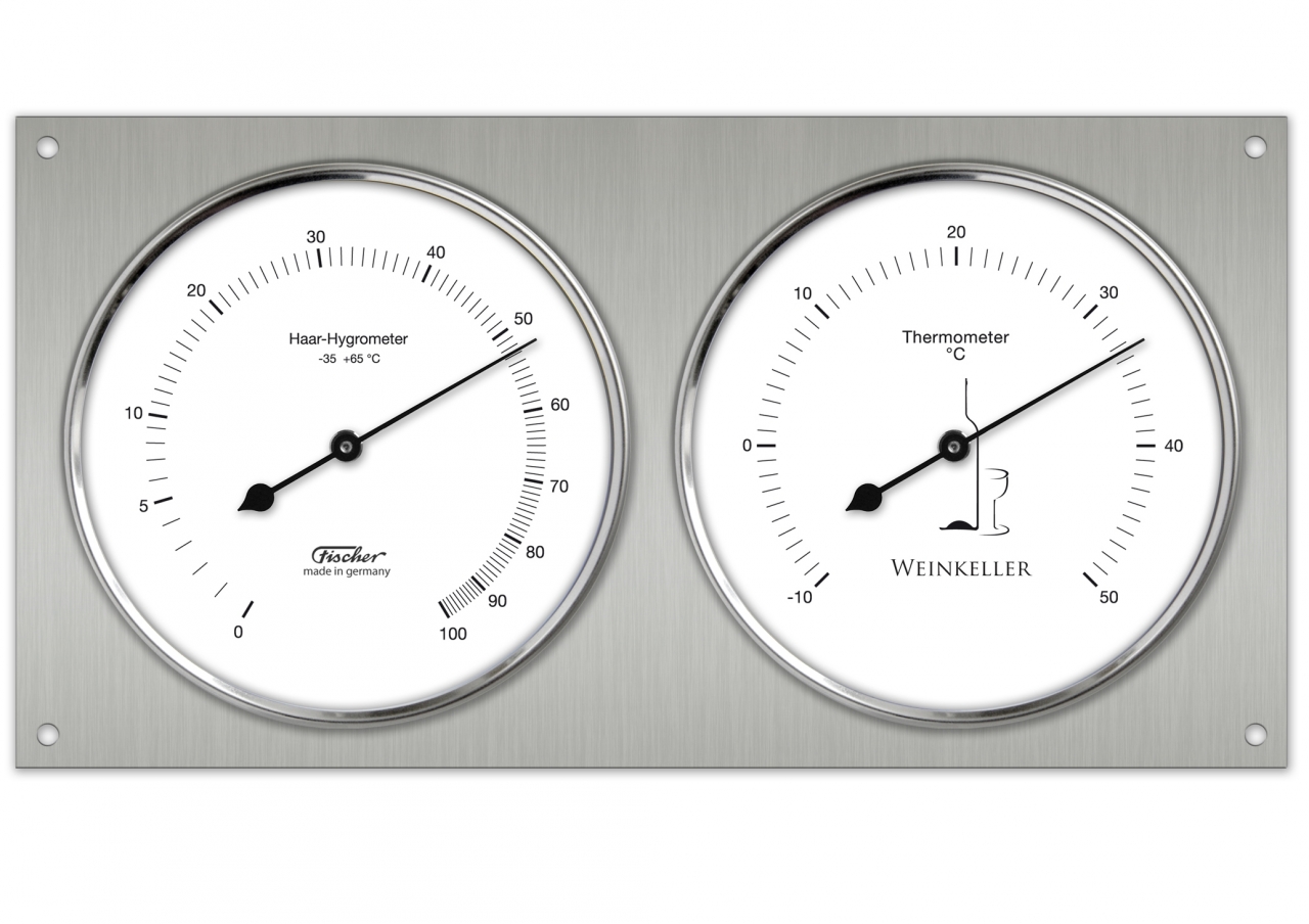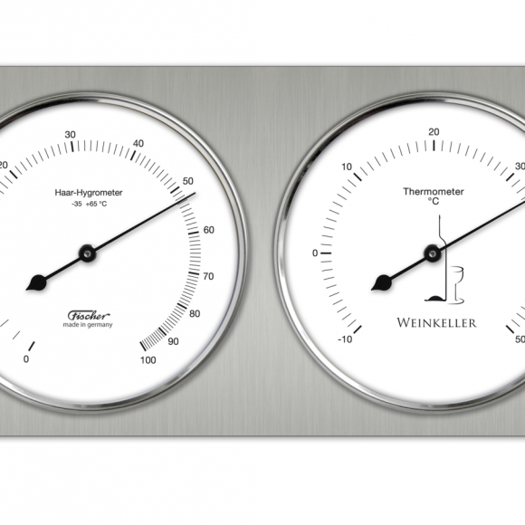 Valódi hajhigrométer bimetál hőmérővel kombinálva a páratartalom és a hőmérséklet mérésére borospincében.