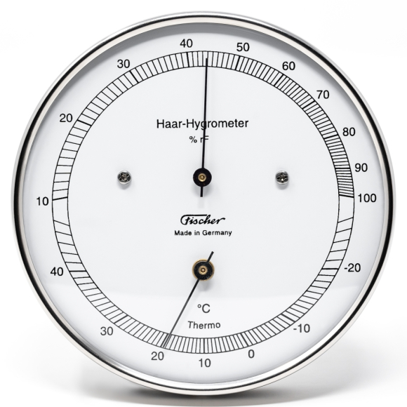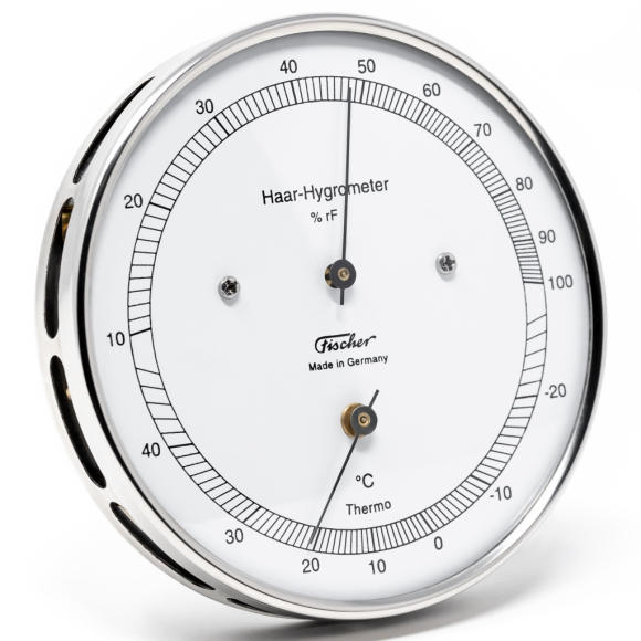 Kültéri mérésekhez és magas páratartalom esetén előnyös a hajhigrométer. A Fischer 111.01T hajhigrométer speciálisan kezelt emberi haja érzéketlen a hőmérsékletre (-35 és +65 °C közötti hőmérséklet-tartomány), és gyorsan reagál a páratartalom változásaira.