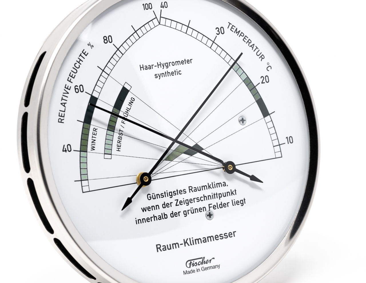 A hőmérővel ellátott beltéri klímahigrométer közérthető módon mutatja az optimális klímaértékeket évszaktól és hőmérséklettől függően.