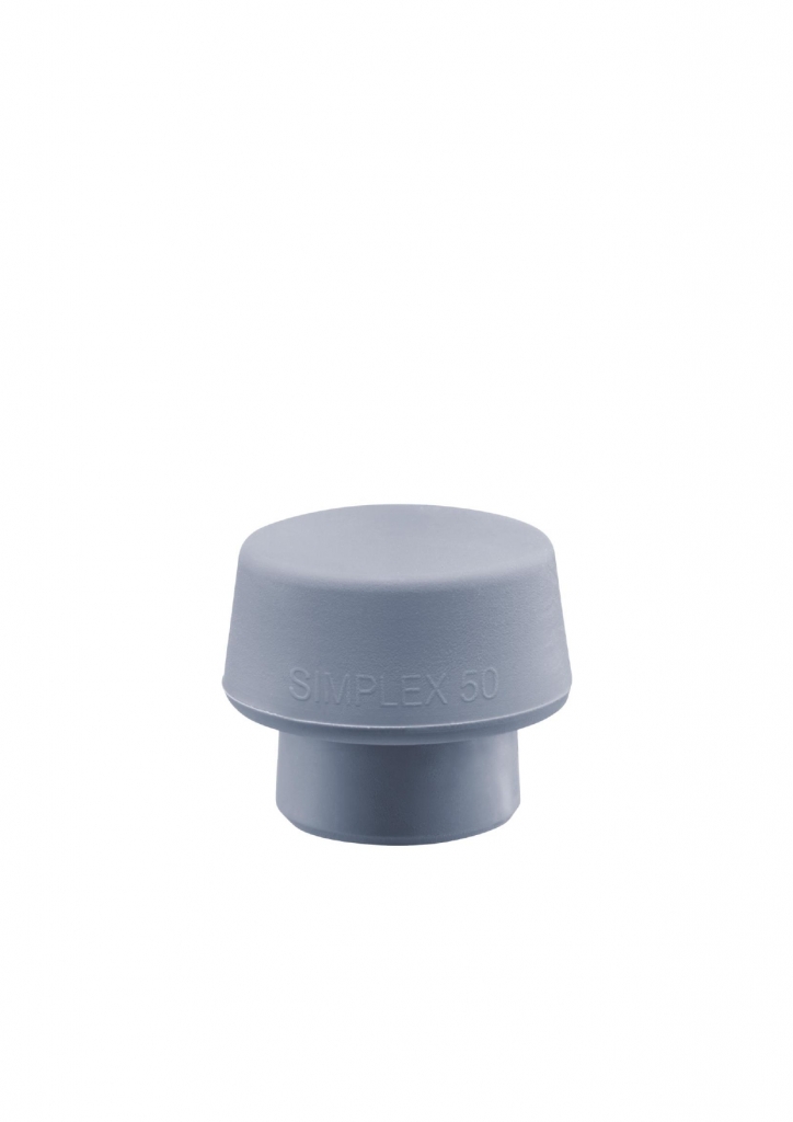 A SIMPLEX ütőbetét TPE-mid egy hőre lágyuló elasztomer, és kb. 90 Shore A keménységű, közepesen kemény ütőbetét (a 3202-es gumiösszetételű betét keménységéhez hasonlítható). Ez a szürke betét nem hagy maga után nem kívánt fekete kopást a hagyományos gumikalapácsokhoz képest. Ennek a speciális változatnak a fejátmérője 50 mm, de D40 mm-es házba van szerelve. A túlméretezett ütőfelületek maximális védelmet biztosítanak az érzékeny felületű munkadarabok érzékeny megmunkálásakor anélkül, hogy a ház megkarcolná.