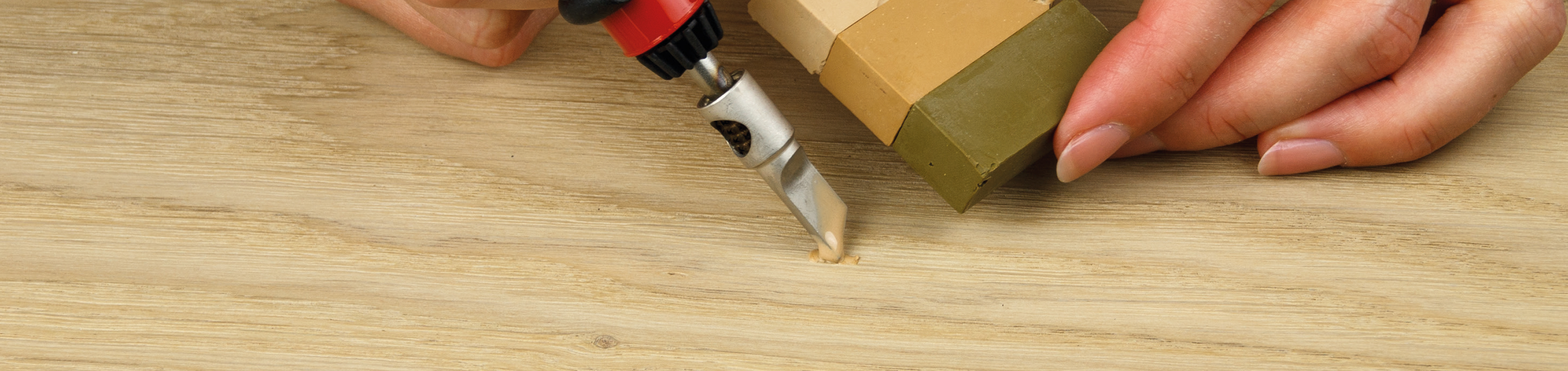 Mély karcolásokhoz és lyukakhoz nagyon matt beltéri felületeken. Olvassa meg, helyezze be és dolgozza laposan a kombinált gyalu elülső élével.
