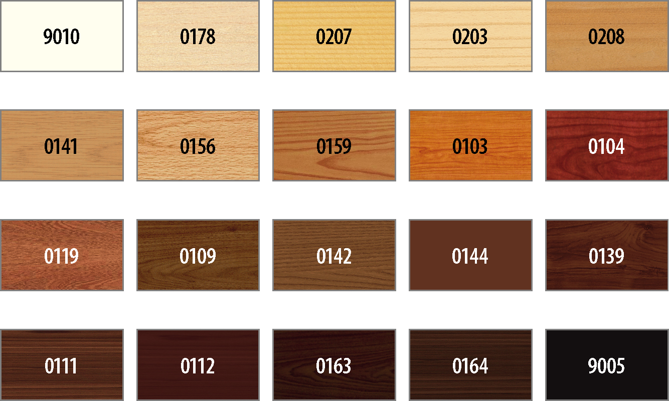 Világos dió 0142 Közepes tölgy 0144 barna 0139 rózsafa sötét 0111 dió sötét 0112 dióbarna 0163 mahagóni barna 0164 antik dió