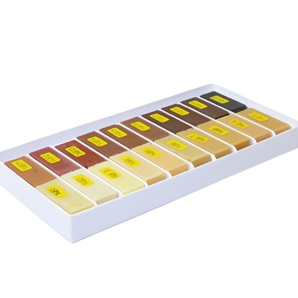 Kemény, olvadáspont 81°C-on, áttetsző színbeállítás effektpigmentekkel a váltakozó színhatás érdekében. 20 árnyalatot tartalmaz.