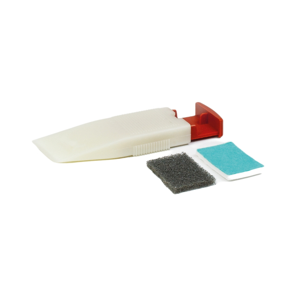 Okos megoldás a töltőanyagok feldolgozásához. A puha viasz erőfeszítés nélkül felvihető és laposan megmunkálható. A keményviasz és a keményviasz PLUS kiemelkedései könnyen „legyalulhatók” a hornyok segítségével – a környező felület megkarcolása nélkül. Az utolsó töltőanyag-maradványokat az integrált gyapjúval távolítják el. Elemek: Test gyaluhornyokkal, fiók tisztító fésűvel, csiszoló- és polírozó kendő (kicsi) és csiszoló gyapjú, durva.