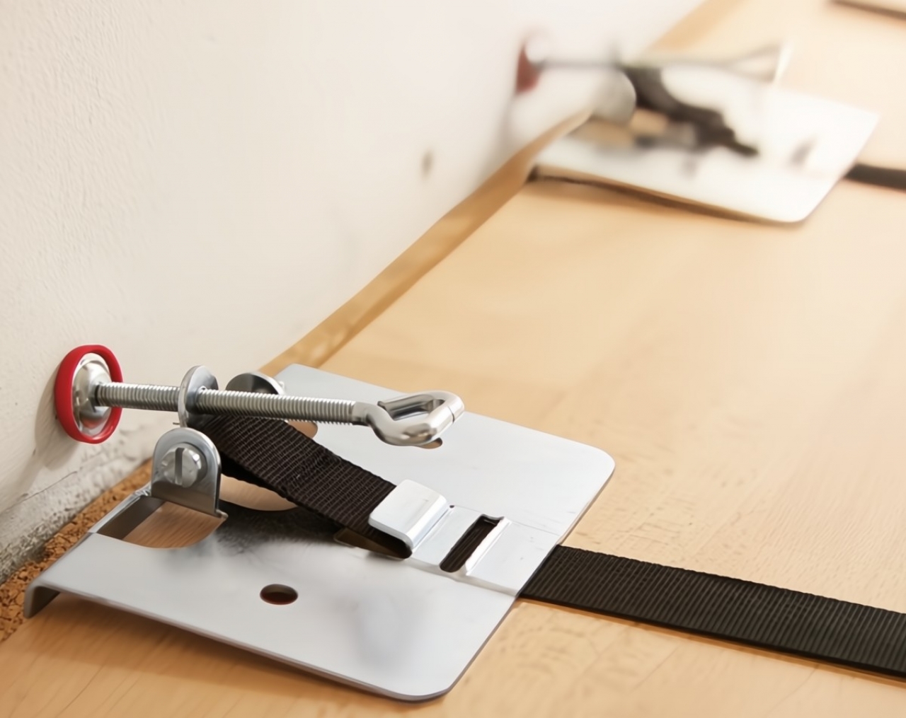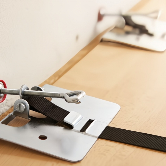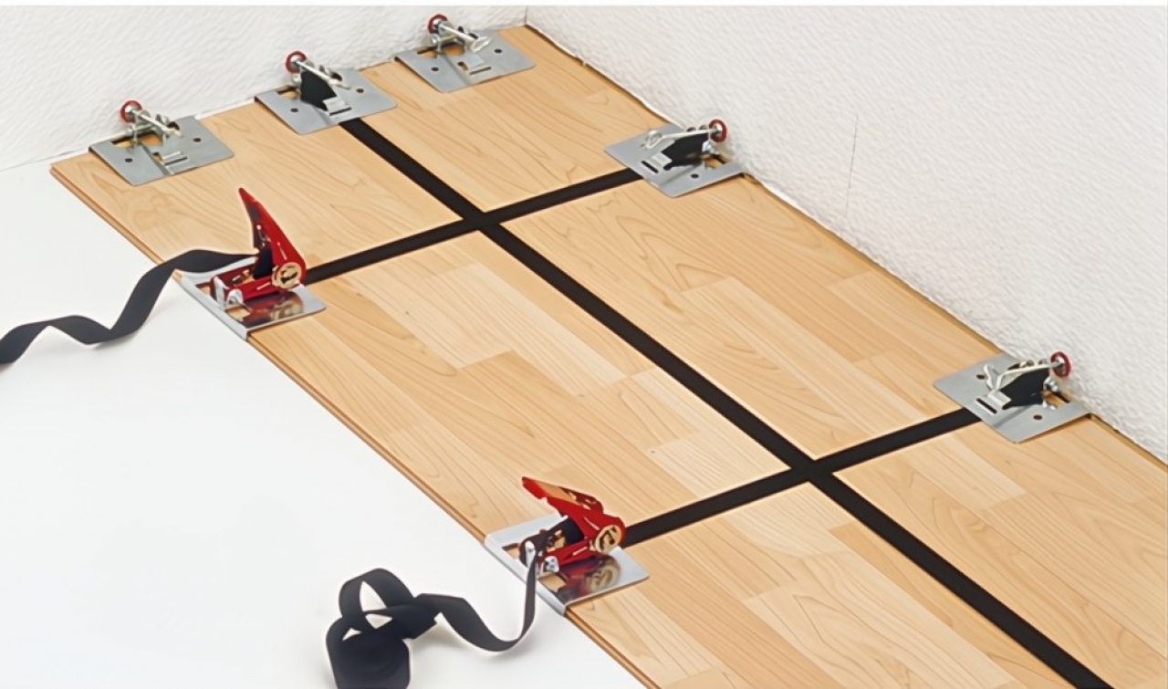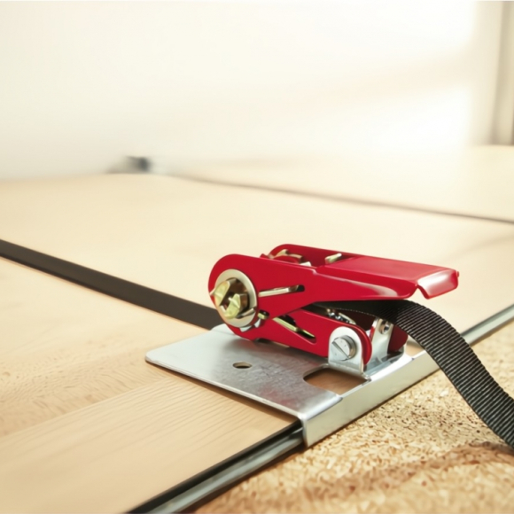Szorító- és fektető segédeszköz, SVH 4000. Kivitel: Kész parketta, laminát padló és forgácslemez lapok lefektetéséhez. SVH távtartóval és rendkívül fix poliészter szalaggal. SB csomagolás.
