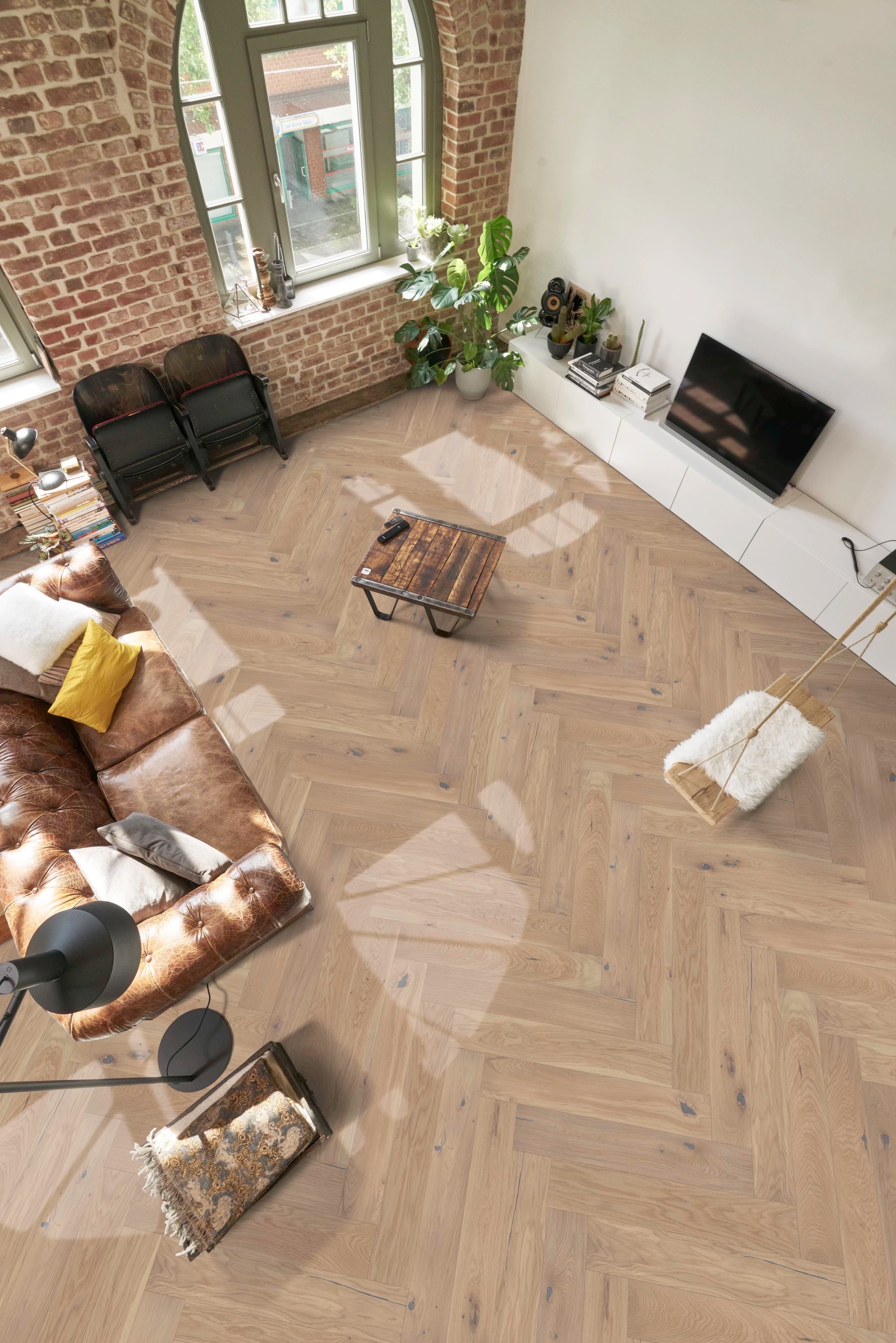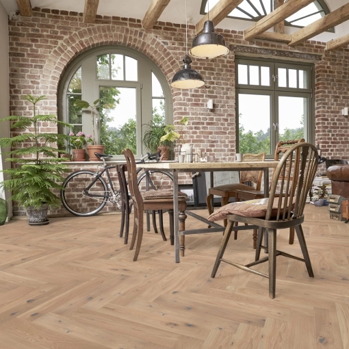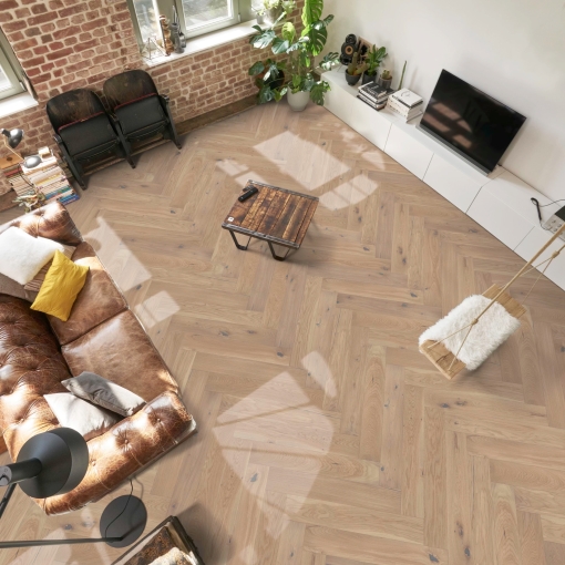 A fapadló időtlen kollekciója elegáns és modern halszálkás dizájnnal, amely bármilyen belső térbe illeszkedik, ez a Chateau Herringbone kollekció. A lécek kefézett felülettel rendelkeznek, ami letisztult megjelenést kölcsönöz a padlónak, és meleg, békés benyomást kelt a belső térben. A Drop-Down zárnak köszönhetően a padló könnyen és gyorsan fektethető.