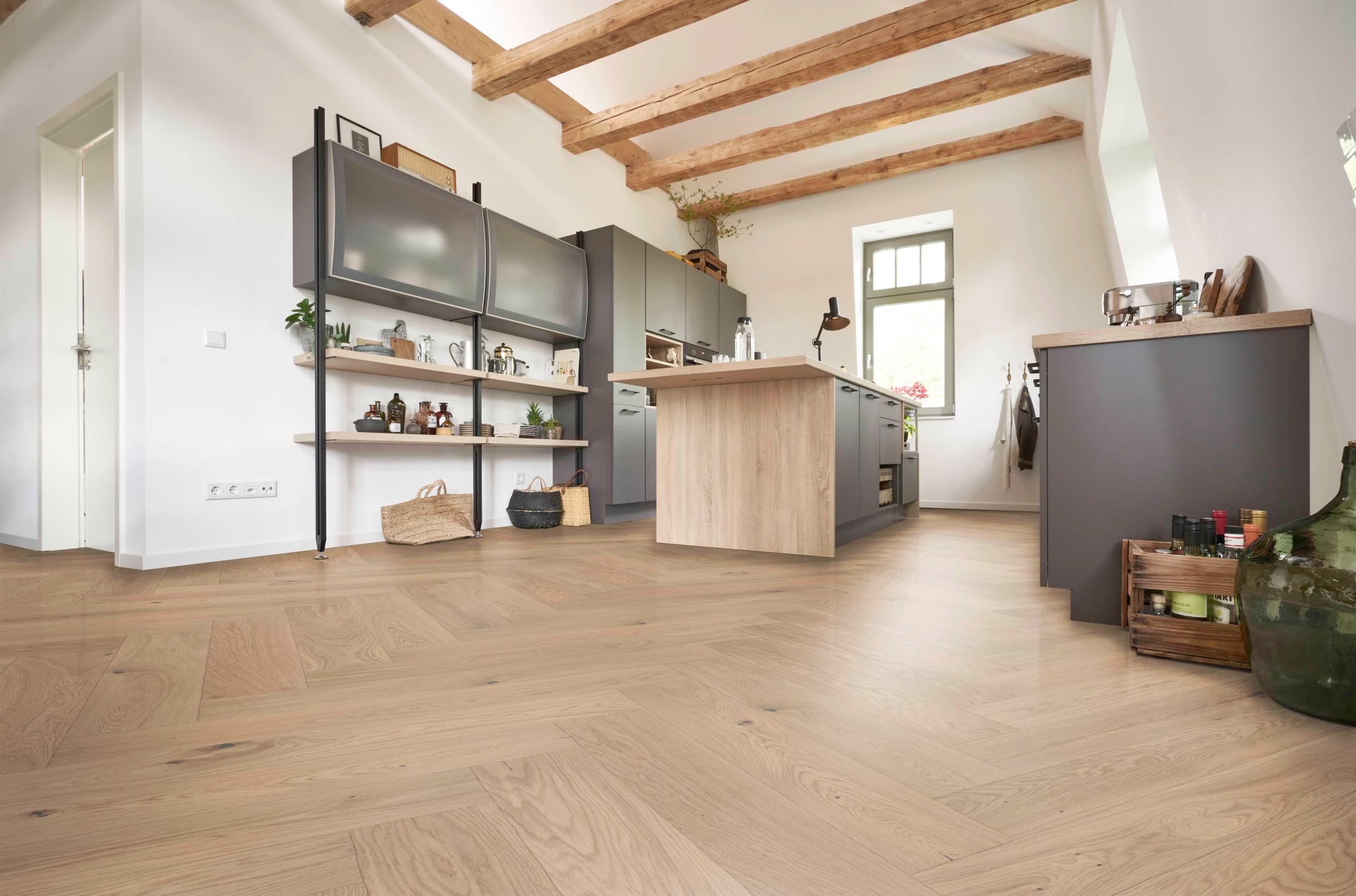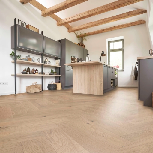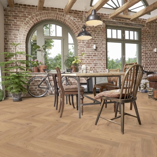 A fapadló időtlen kollekciója elegáns és modern halszálkás dizájnnal, amely bármilyen belső térbe illeszkedik, ez a Chateau Herringbone kollekció. A lécek kefézett felülettel rendelkeznek, ami letisztult megjelenést kölcsönöz a padlónak, és meleg, békés benyomást kelt a belső térben. A Drop-Down zárnak köszönhetően a padló könnyen és gyorsan fektethető.