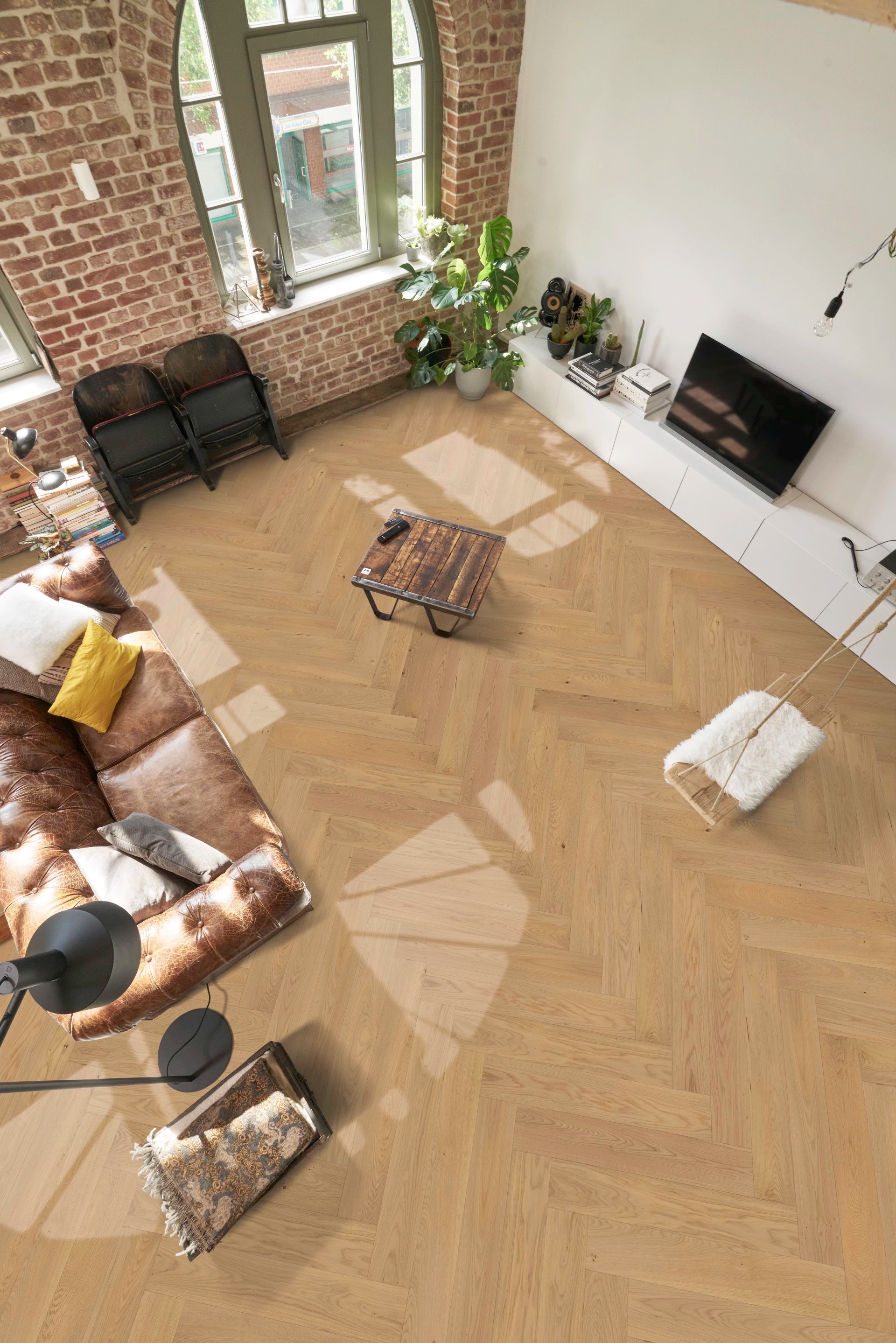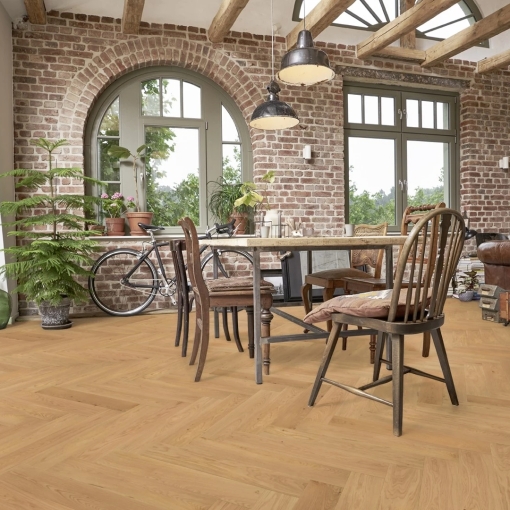 A fapadló időtlen kollekciója elegáns és modern halszálkás dizájnnal, amely bármilyen belső térbe illeszkedik, ez a Chateau Herringbone kollekció. A lécek kefézett felülettel rendelkeznek, ami letisztult megjelenést kölcsönöz a padlónak, és meleg, békés benyomást kelt a belső térben. A Drop-Down zárnak köszönhetően a padló könnyen és gyorsan fektethető.