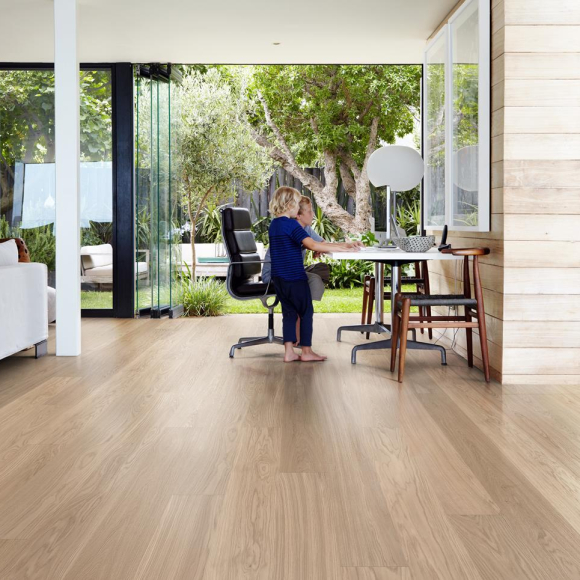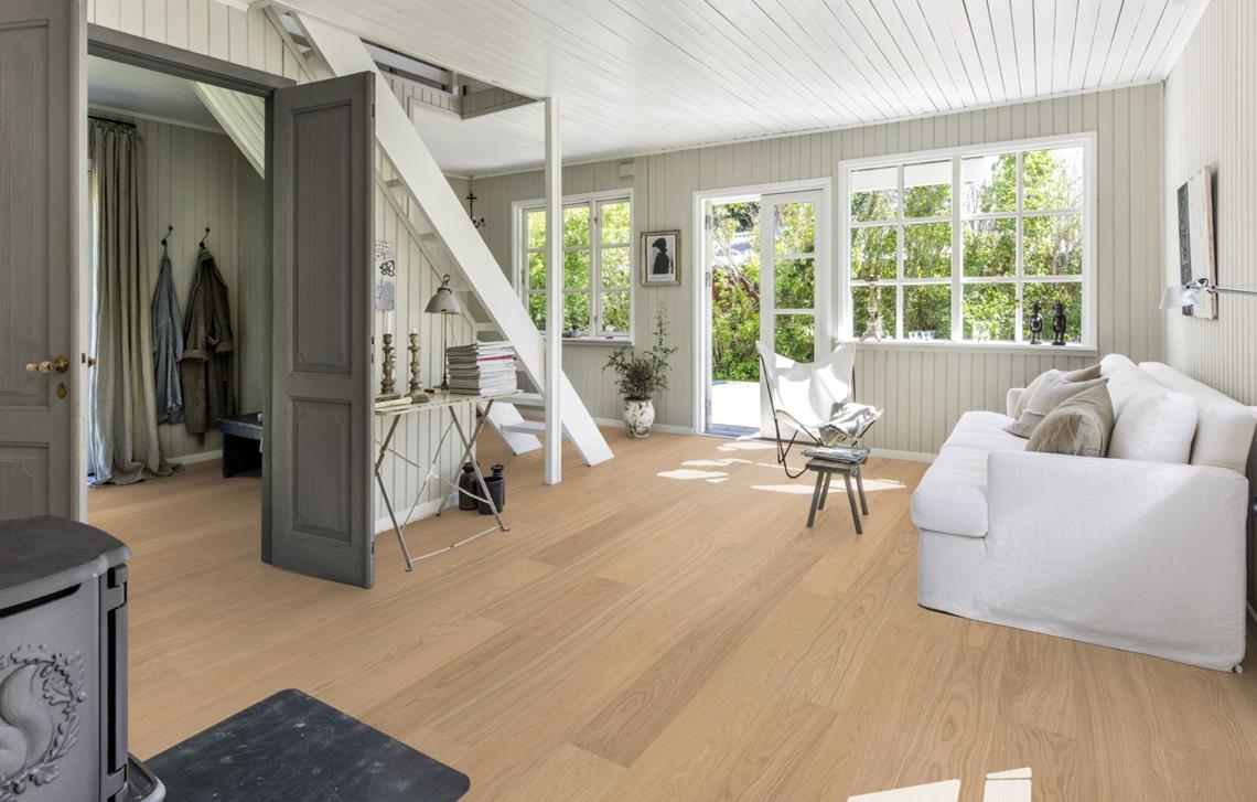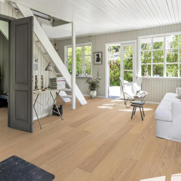 A Spark tölgyfa meleg, gyömbérszerű világos tónusai hívogató hangulatot kölcsönöznek bármely helyiségnek. A fa természetes szépségét kiemeli egyedi erezete, autentikus és organikus hangulatot teremtve, amely fokozza otthona melegségét.
