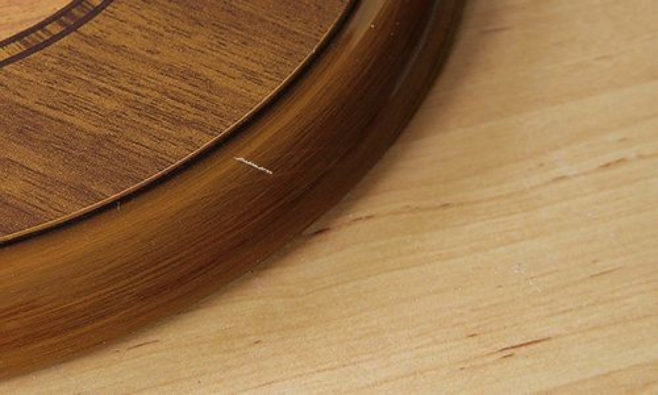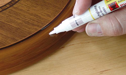Nyomd le az ecsettoll átlátszó lakk hegyét egy pamutkendővel, hogy simítsd el, majd óvatosan fesd át a karcolást.