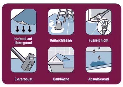 A Floorliner Absorb egy különösen sűrű, nedvszívó, de vízzáró réteggel ellátott nem szőtt anyag.