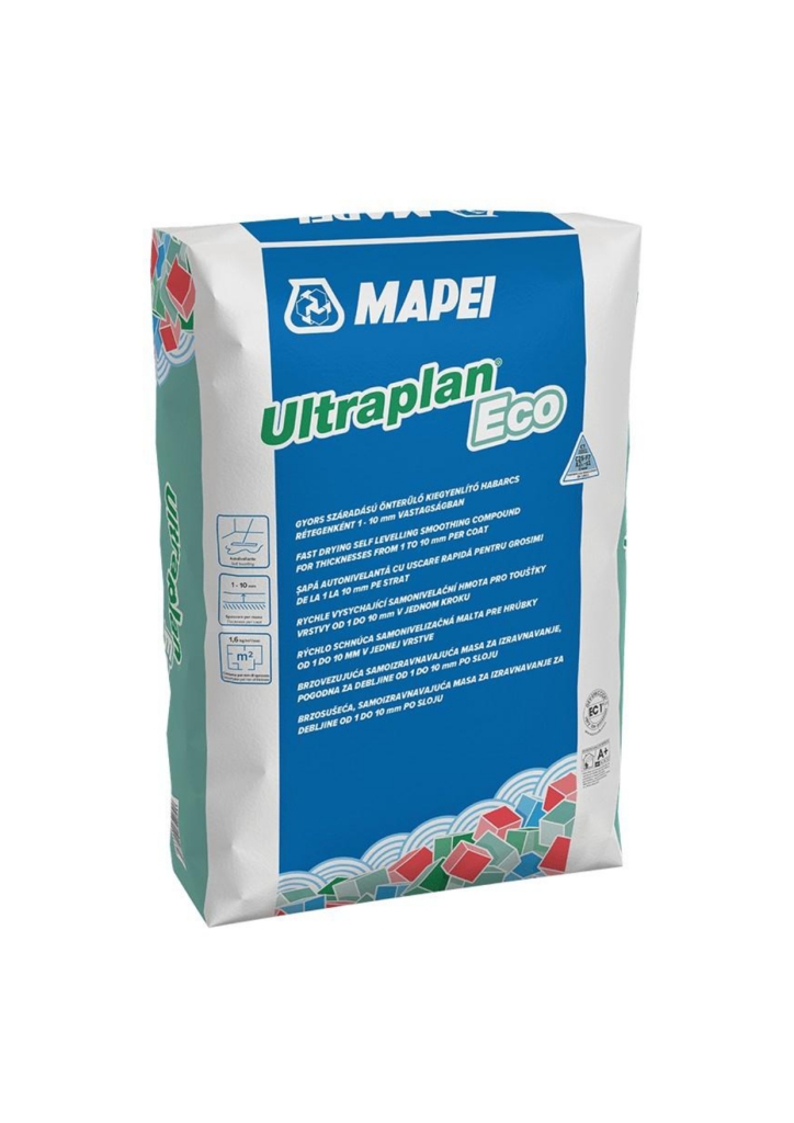 Ha ultragyors szilárdulású aljzatkiegyenlítőre van szüksége, akkor válassza az Ultraplan Eco termékünket. Akár új, akár meglévő beltéri aljzatok 1-10 mm vastagságú kiegyenlítésére és szintkülönbségeinek megszüntetésére alkalmas, ezáltal azok alkalmassá válnak bármilyen padlóburkolat fogadására ott, ahol követelmény a nagy ellenálló képesség a terheléssel és a forgalommal szemben. Az Ultraplan Eco különösen alkalmas görgős székek alá, amire azonban figyelni kell, hogy a termék csak beltérben használható.