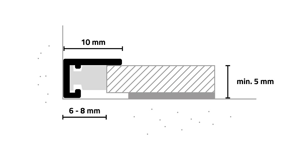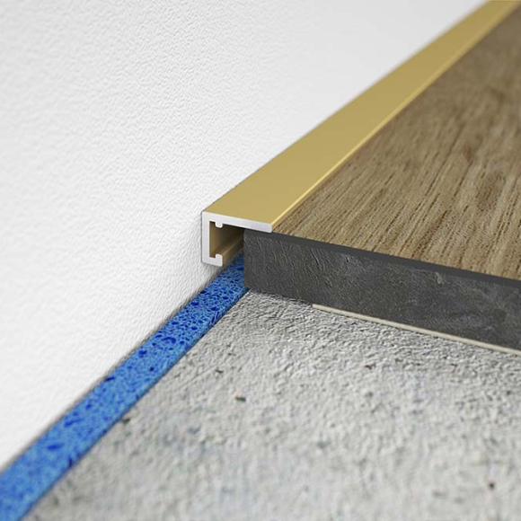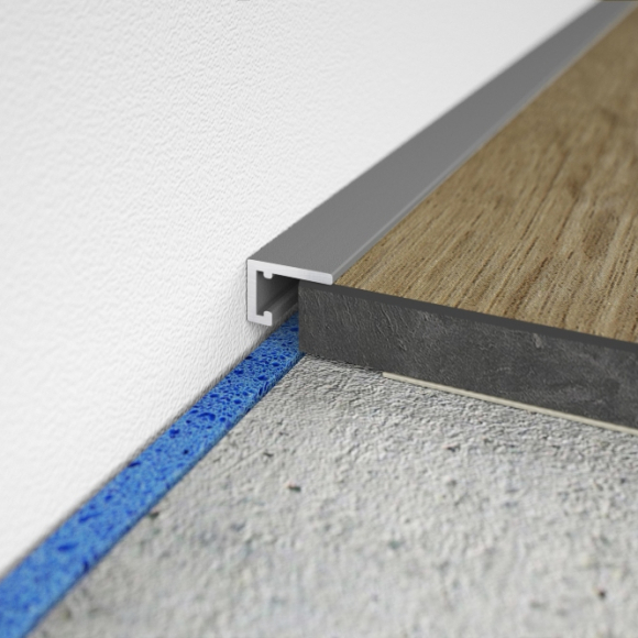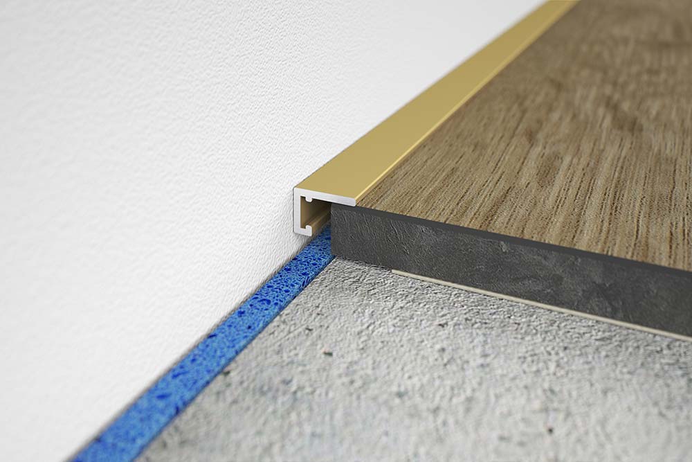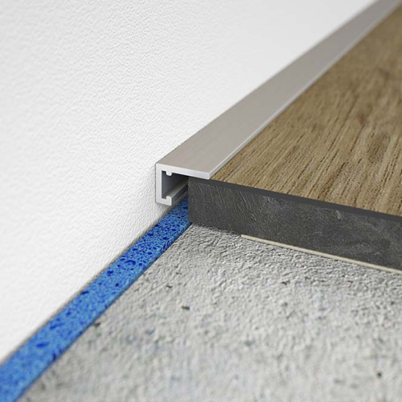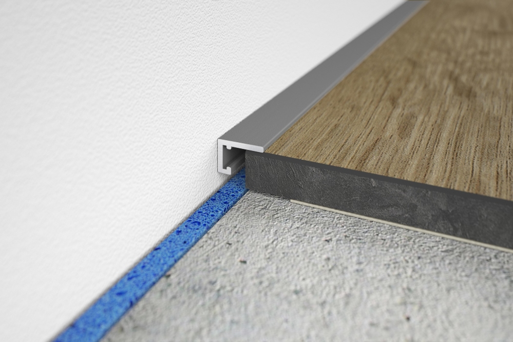 Az AL10X5 végzáró profil diszkrét és innovatív megjelenést hoz létre a padló és a fal, az ablakkeret vagy a lépcső között, és bárhol, ahol dilatációs hézagot kell kialakítani a beton szerkezetek hőtágulása miatt.