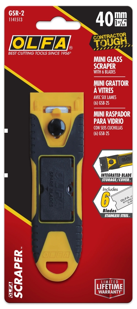 Az OLFA 40 mm-es GSR-2 rozsdamentes acél pengéjű mini üvegkaparó robusztus kaparási képességeket kínál kompakt méretben. Akár festékkel, ragasztóval, tömítőanyaggal vagy egyebekkel dolgozik, ez a zsebméretű kaparó kiváló választás bármilyen kaparási feladathoz.