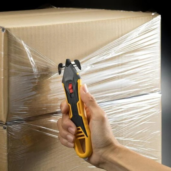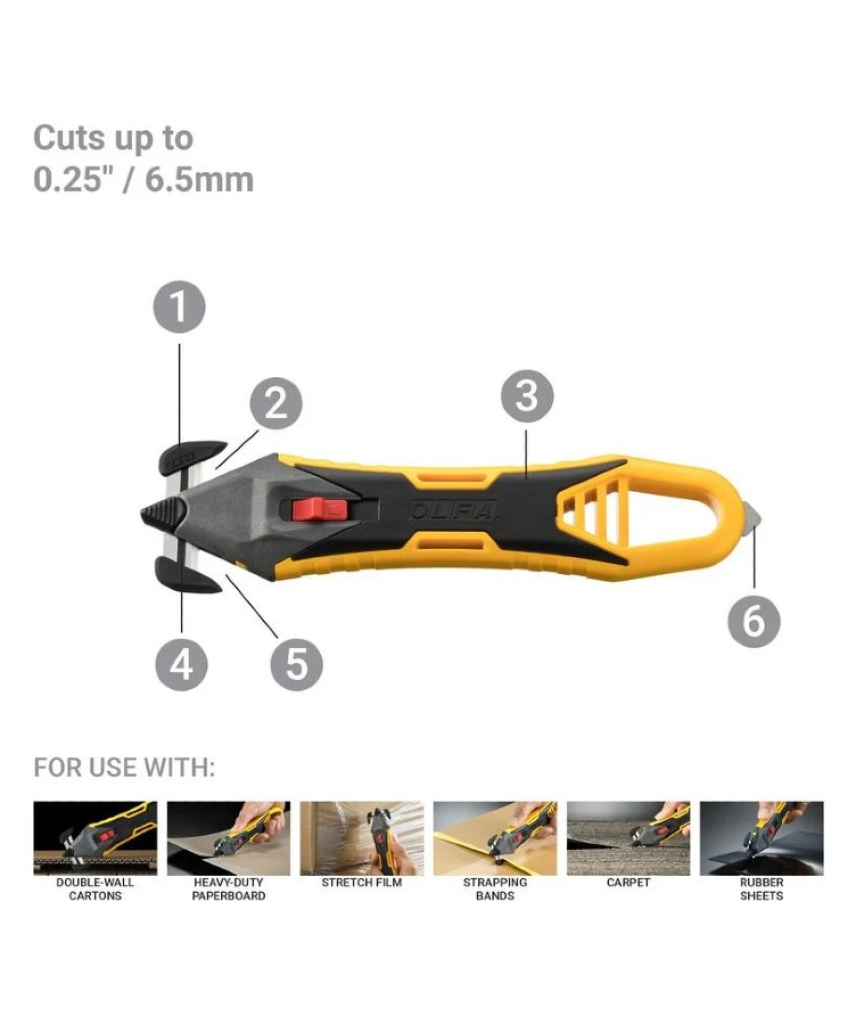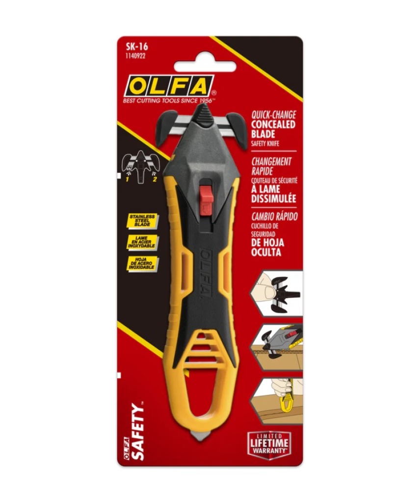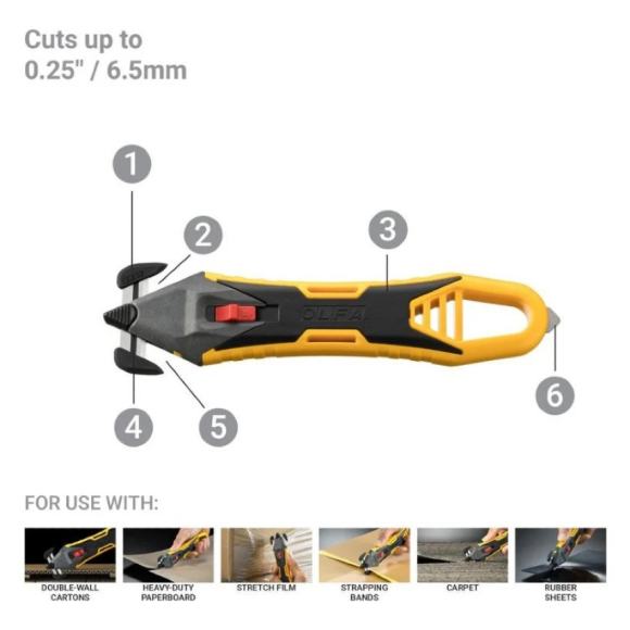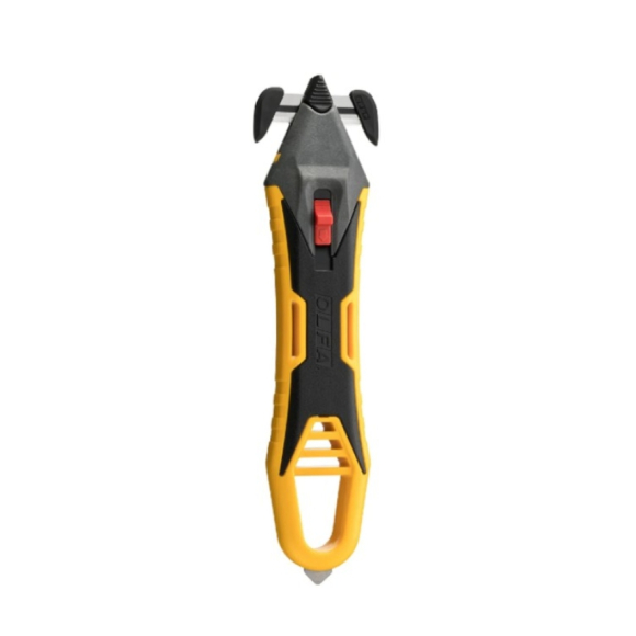 „Akár munkahelyi előírásról, akár személyes döntésről van szó, egy univerzális kés szabadon lévő pengéje nem mindig a legjobb választás. Az OLFA ötletes biztonsági késkialakítása a segítségedre siet a vágási feladatok széles skáláján. A mindkét oldalon található nyílásoknak köszönhetően könnyedén felvághatod a dobozokat, míg a védőhegyek biztonságban tartják az alattuk lévő dolgokat. Ezek a hegyek a pengétől való távolságot is annyira csökkentik, hogy az ujjaid véletlenül se érhessék el. Amikor pengecserére van szükség, csak nyomd meg a gyorskioldó gombot, és pattintsd a helyére az újat.”