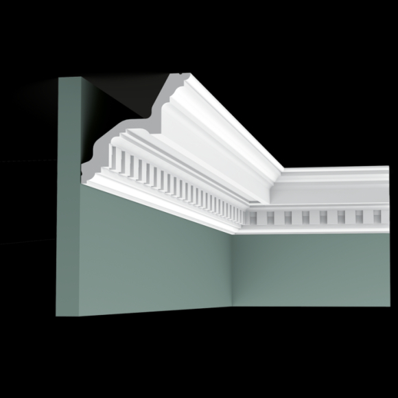 A klasszikus építészet ihlette impozáns díszléc. Ez a redőzött design valami kis pluszt ad a belső térnek.