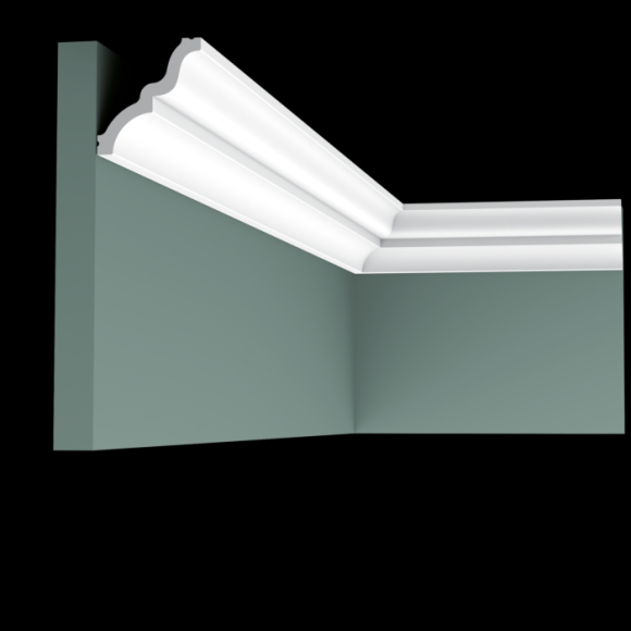 Egyszerű lapos profil, árnyék vonallal hátul. Csak kissé érdekesebbé teszi a falról a mennyezetre való átmenetet.