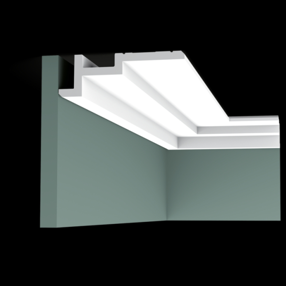 Letisztult, modern profil a Steps termékcsaládból. Itt a legnagyobb részt rögzítjük a mennyezethez, így a tér szélesebbnek tűnik.
