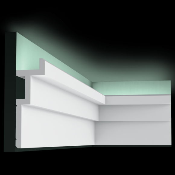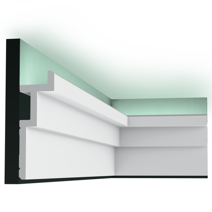 Ez a letisztult, modern profil a Steps termékcsaládból LED-világítás elrejtésére is használható. A fenti és lenti szögletes sarkok további finom árnyékvonalakat biztosítanak. Orio Tonini tervezte.