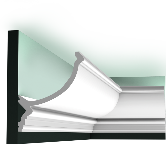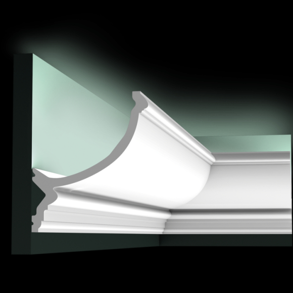 Nagyméretű, Ovolo ihletésű díszléc. Használja ezt a profilt felső világításként, hogy azonnali hangulatot varázsoljon bármilyen térbe.