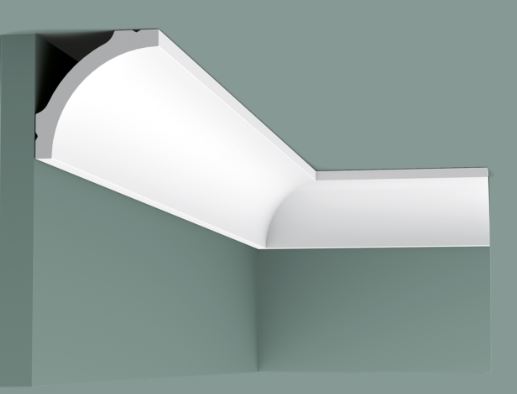 Közepes méretű klasszikus karnis díszléc egyszerű ívvel.