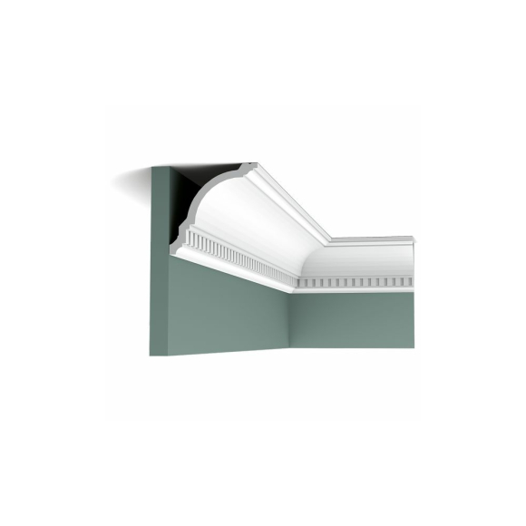 Ez az elegáns díszléc finom átmenetet hoz létre a fal és a mennyezet között.