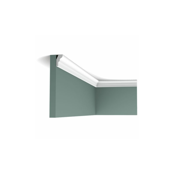Ez a visszafogott, klasszikus díszítés diszkrét átmenetet hoz létre a fal és a mennyezet között.