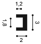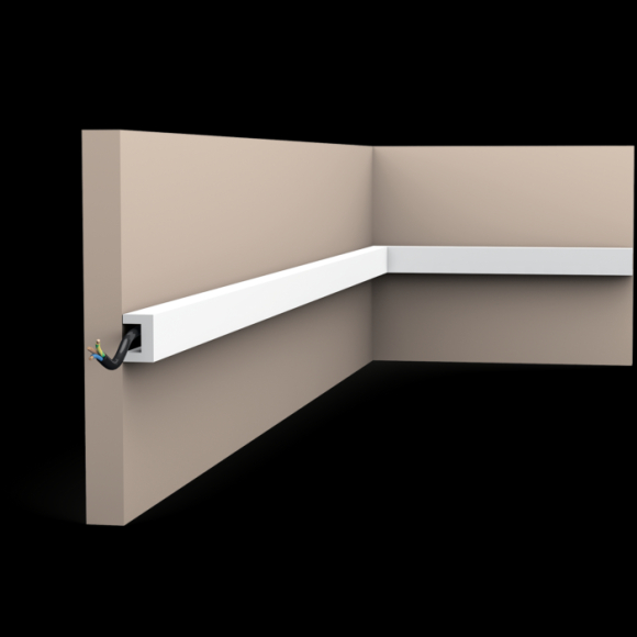 Finom, ütésálló U alakú profil. Praktikus megoldás a falak és a mennyezet melletti kábelek elrejtésére. Orio Tonini tervezte.