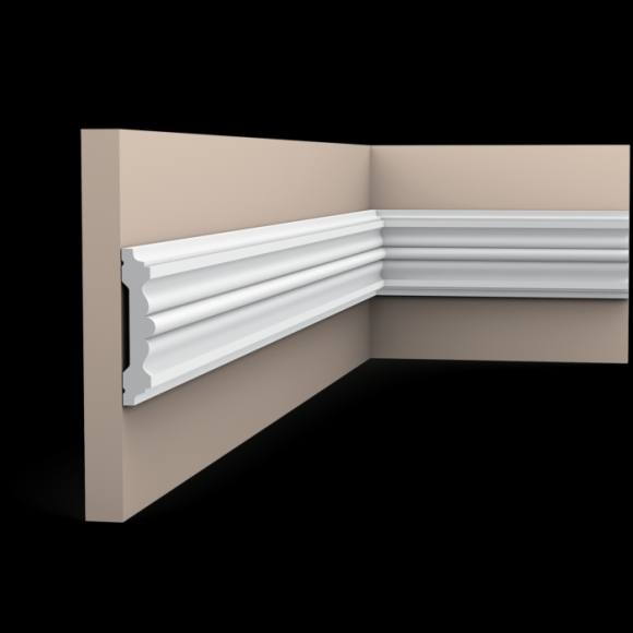 Klasszikus lapos díszléc lineáris mintával. Finom befejezést biztosít bármilyen típusú belső térnek.