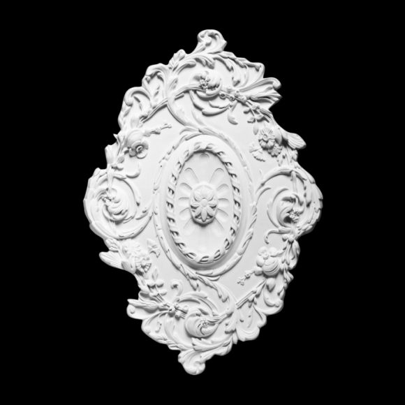 Klasszikus, süllyesztett ovális rozetta lenyűgöző faragott levélmintával és virágokkal.