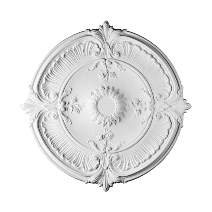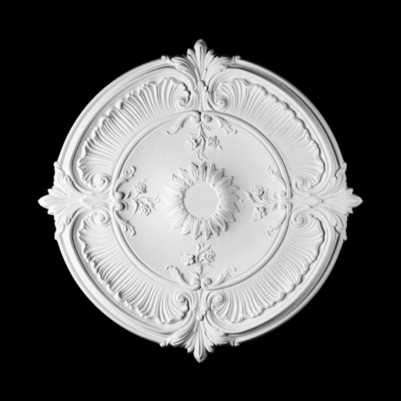 Nagy rozetta klasszikus faragással. Kábelek elrejtésére használható. Beépítési megjegyzés: Ezt a profilt a falhoz kell csavarozni.