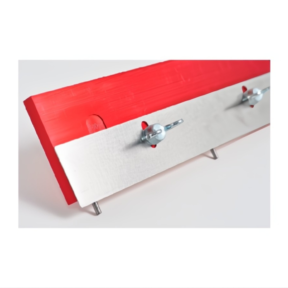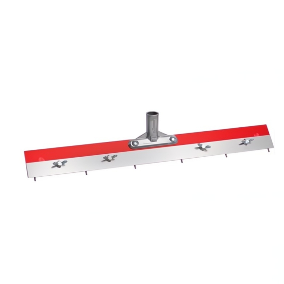 Tömör alumíniumból készült alapprofil, 600 mm széles, 6 edzett acél csappal és rozsdamentes acél távtartó lemezzel a különböző alkalmazási magasságok beállításához 0-11 mm között egy skála segítségével. Fogantyútartóval szállítjuk, nyél nélkül, teleszkópos nyélre alkalmas.