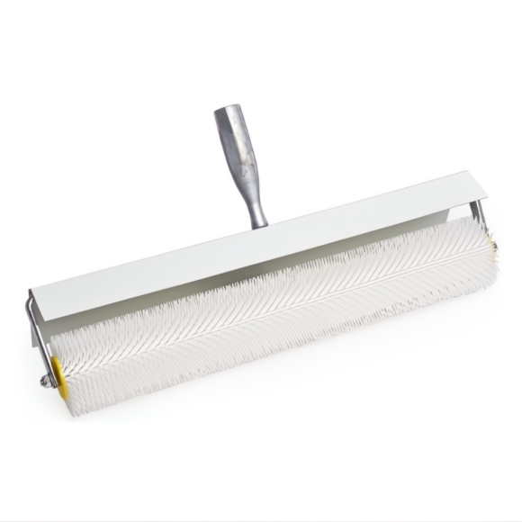 Szellőztető görgő 500mm x 31mm beépített fröccsenésvédővel. A 31mm hosszó szálak speciális elrendezése, nagyban segíti az aljzatkiegyenlítőben keletkezett buborékok távozását, és az anyag kimagaslóan jó terülését.